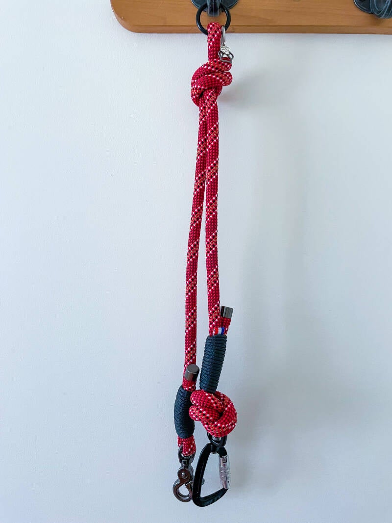 Le coupleur est un accessoire fabriqué en paracorde certifiée EKO TEX, elle est donc sans danger pour l'humain et le chien. Il mesure environ 45 cm de long et peut avoir 2 mousquetons différents, selon les gabarits et tempéraments de vos chiens. Il vous permet de tenir 2 chiens au bout de la même laisse.